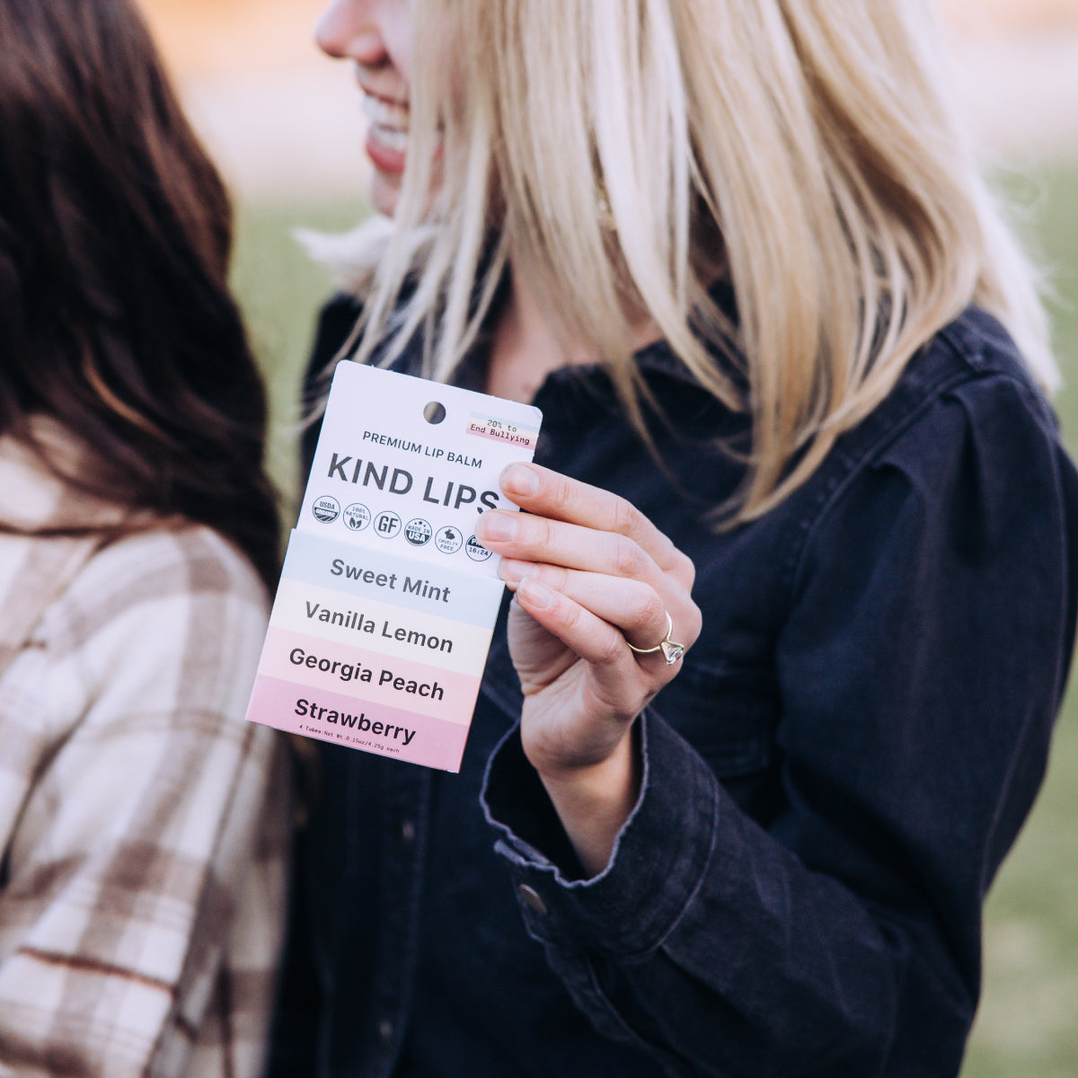 Our favorite lip balm flavors can now be found in one amazing little box. The flavors included in this variety 4 pack box are Sweet Mint, Vanilla Lemon, Georgia Peach, and Strawberry.