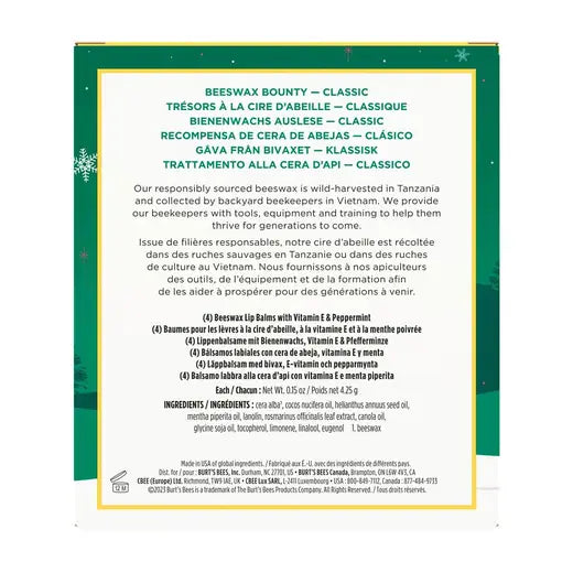 Cera Alba, Cocos Nucifera Oil, Helianthus Annuus Seed Oil, Mentha Piperita Oil, Lanolin, Tocopherol, Rosmarinus Officinalis Leaf Extract, Glycine Soja Oil, Canola Oil, Limonene, Linalool, Eugenol 1, Beeswax.