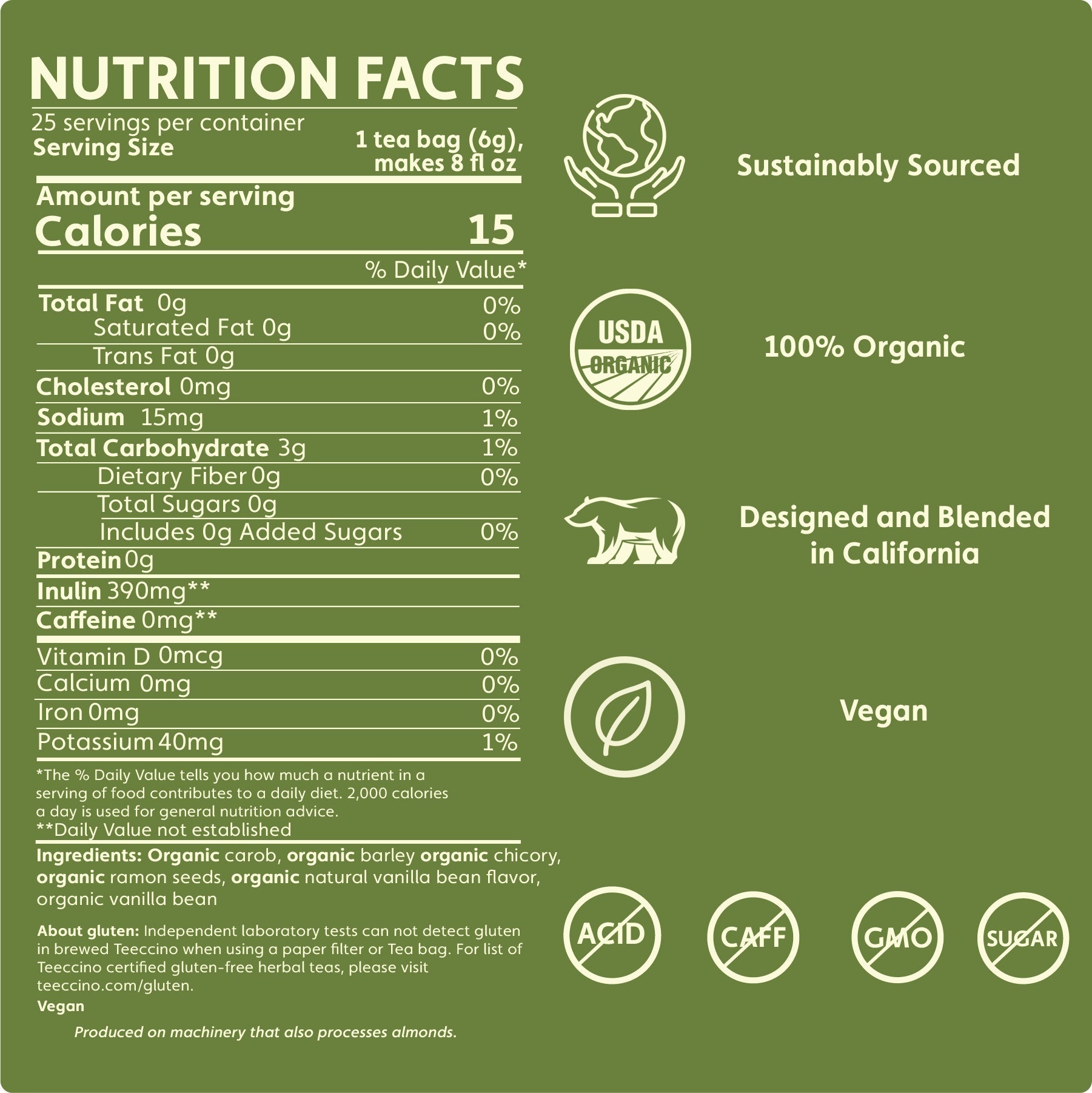 Fragrant, creamy vanilla beans are blended with dark roasted ramón seeds and chicory root to produce that unparalleled smooth French Vanilla taste.