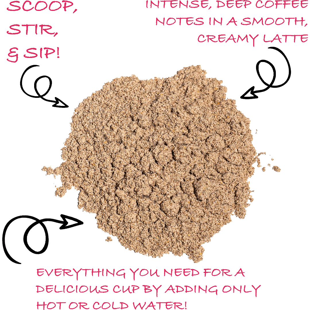 Intense deep coffee notes with a robust, focused body from roasted chicory and wild ramón seeds meets a creamy blend of gluten-free oat and coconut milks. Lightly sweetened from dates without any added sugar plus MCT oil for an energy boost. It’s everything you love about a barista-crafted cup—plant-based, dairy-free, and ready in seconds.