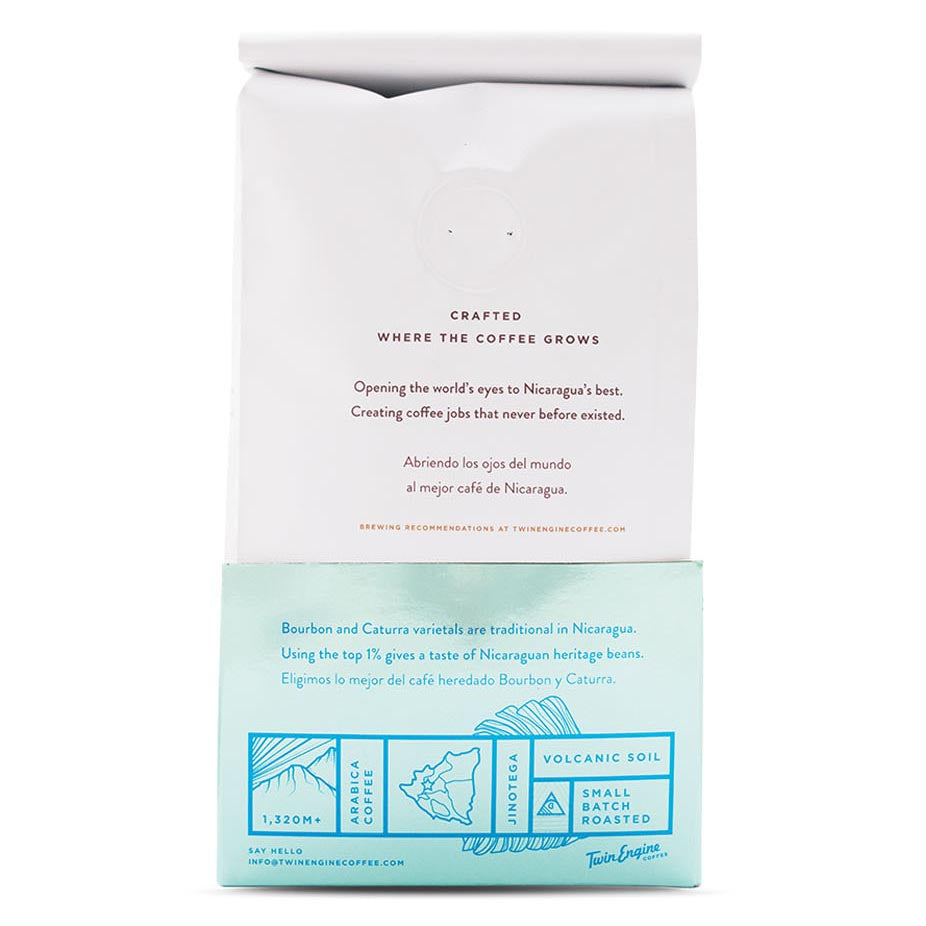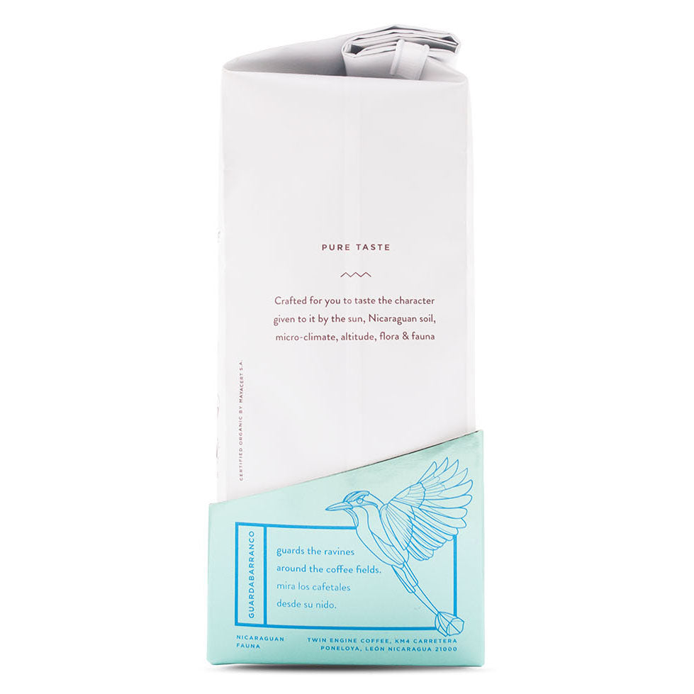 It is no coincidence that the Guardabarranco flies proudly at the side of The Estate. The Estate is a true Flagship in all of its glory flying the Nicaraguan specialty coffee “flag”. The Estate is the guiding coffee profile, the classic taste of Nicaraguan specialty from the heritage Arabica varieties and growing region. The top 1% Arabica Caturra, often referred to as Typica here on the farm is showcased with her grandmother, Bourbon. Together, these coffees demonstrate the beloved Nicaraguan chocolate and citrus with a balanced body. Without distracting defects, The Estate offers the best example of one of the world’s greatest heritage coffees. Zero defects. Tastes of cacao and rich coffee. Light roast perfect for the morning. Whole.