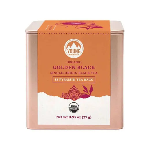 YOUNG MOUNTAIN TEA - ORGANIC GOLDEN BLACK TEA (12 PYRAMID TEA BAGS, 0.95 OZ)